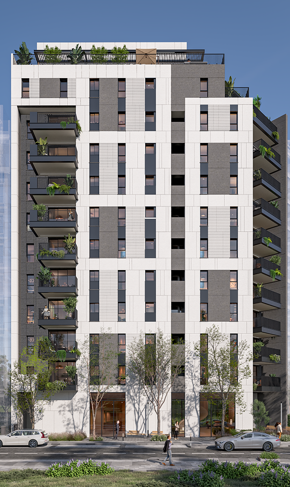 התכנון המוקפד לוקח בחשבון את הפרטים הקטנים ביותר, מהמעטפת החיצונית האלגנטית והפיתוח הסביבתי, דרך הלובי המרשים והמעוצב ועד הדירות המרווחות עם החללים והמפתחים בגובה מלא המייצרים חווית מגורים הרמונית ושלמה.